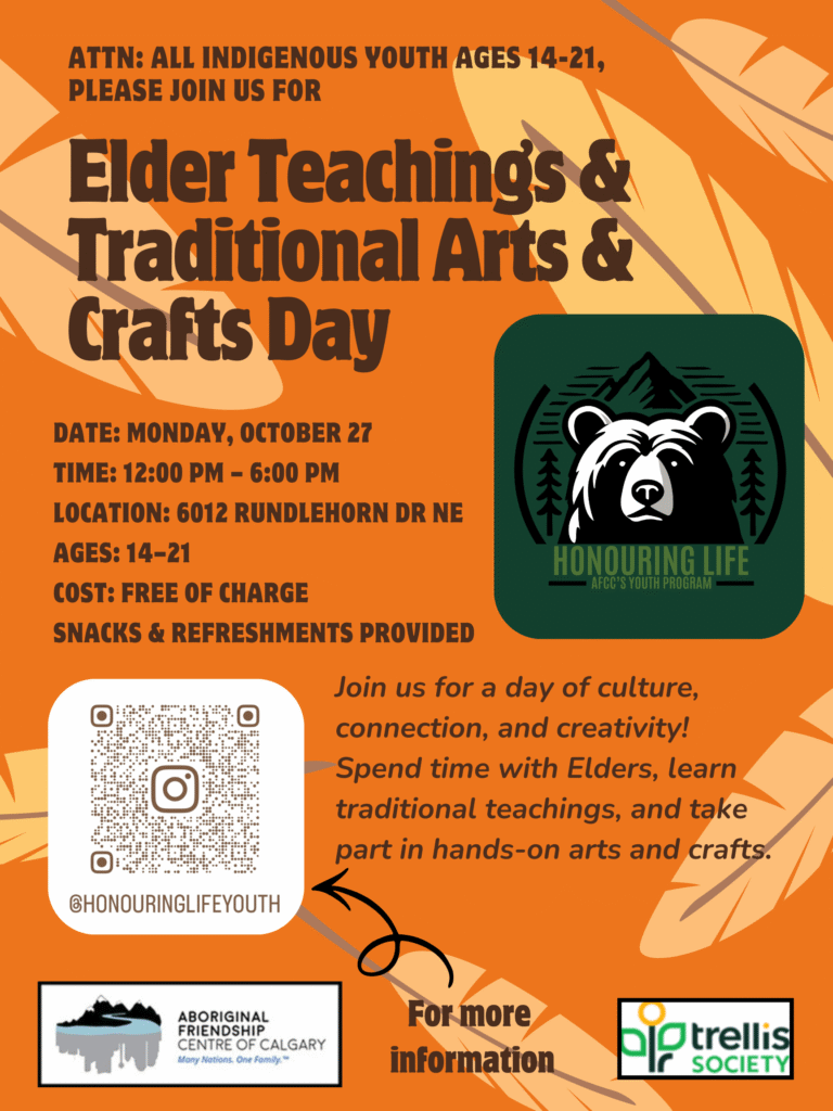 • Elders Services: We honour our wisdom keepers with dedicated programs and spaces, including Calgary’s first Indigenous Elders’ Drop-in Centre, Kanakaatsi’nom.