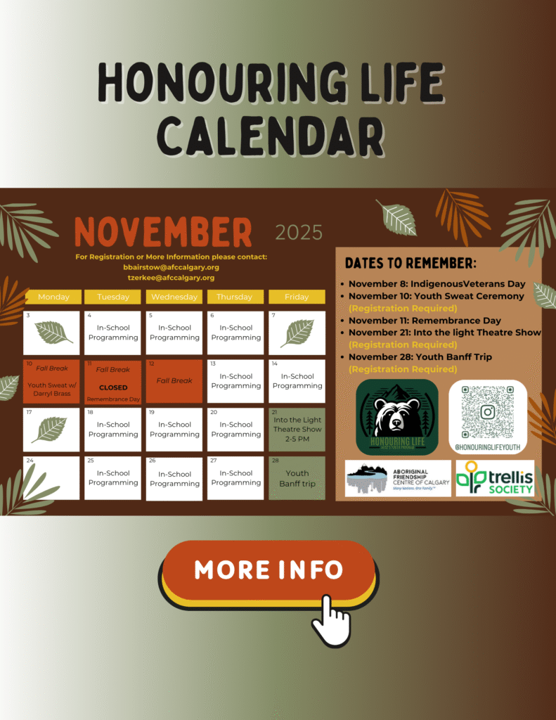 - Elders Services: We honour our wisdom keepers with dedicated programs and spaces, including Calgary’s first Indigenous Elders’ Drop-in Centre, Kanakaatsi’nom.