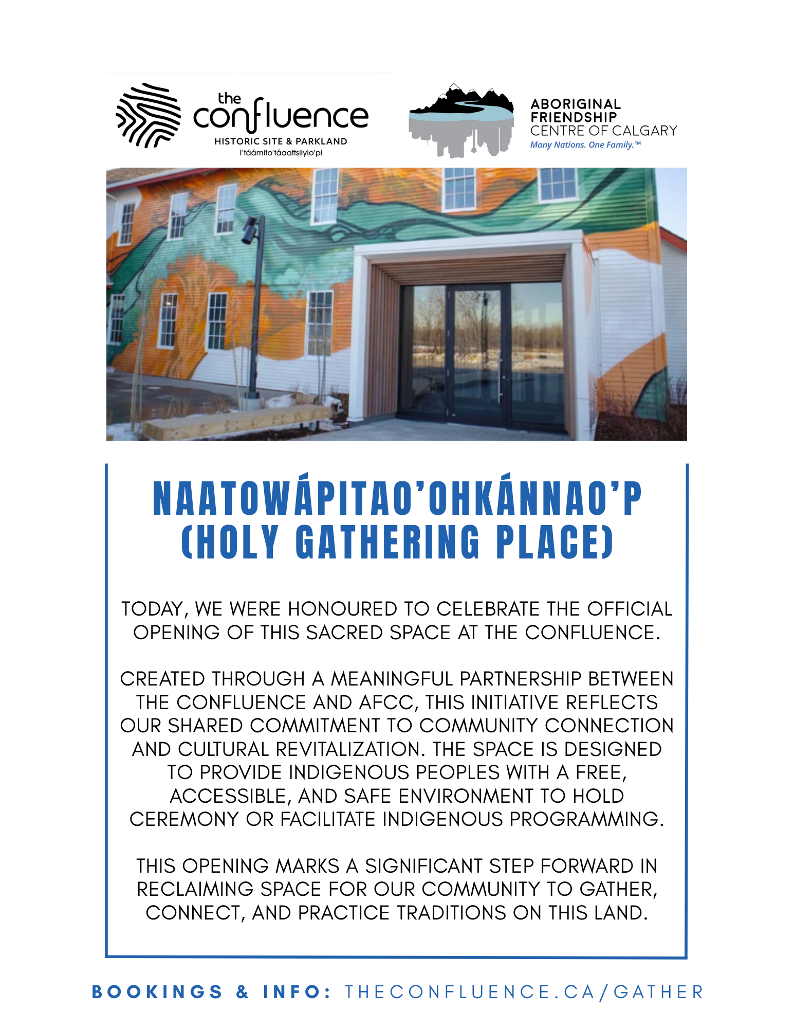Today, the Aboriginal Friendship Centre of Calgary (AFCC) stood alongside our relations. Together, we were honoured to celebrate the official Holy Gathering Place opening at The Confluence.