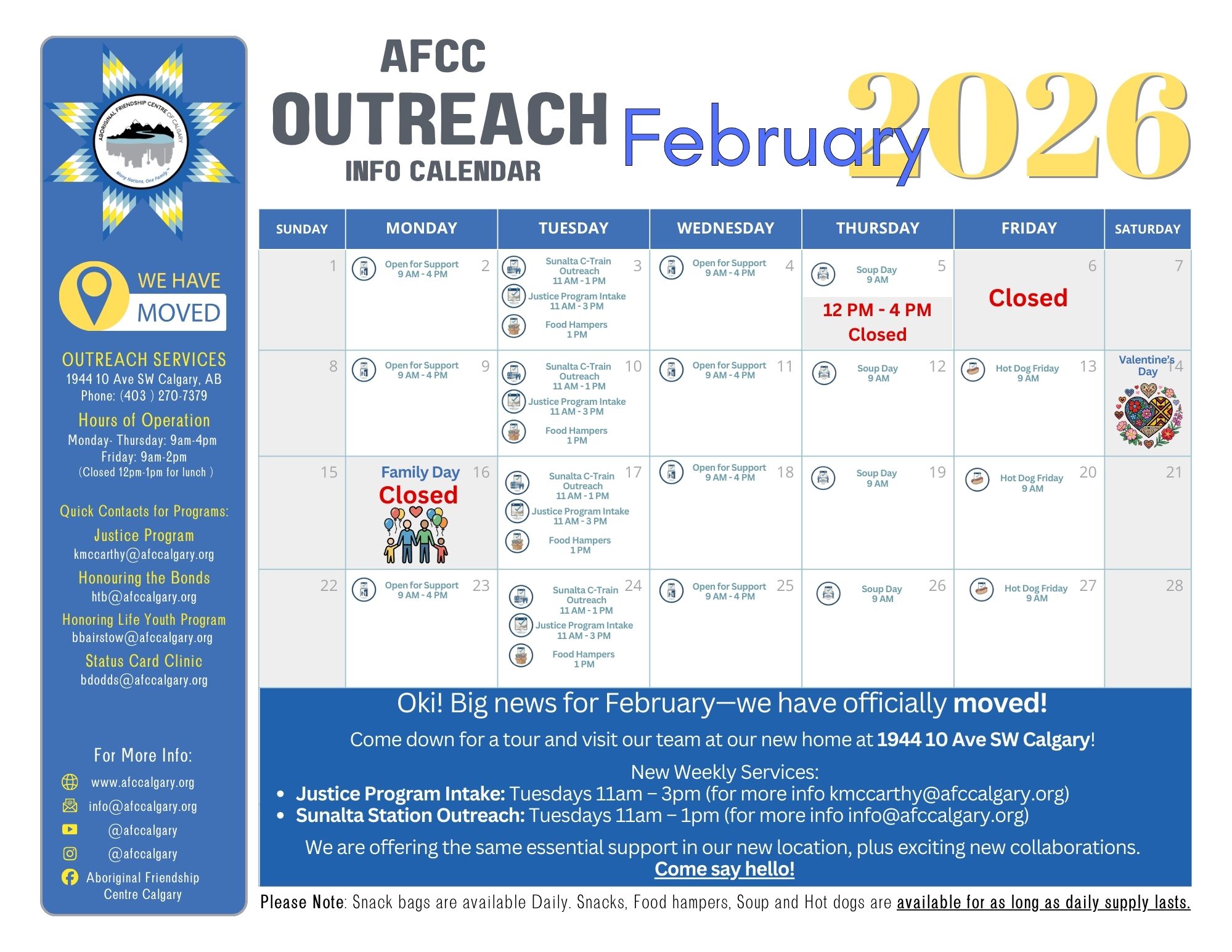 Oki! The Aboriginal Friendship Centre of Calgary (AFCC) Outreach team has officially moved!