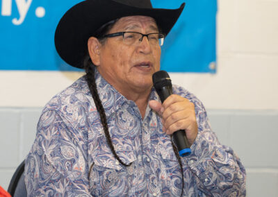 The program featured an Opening Prayer by Elder Jackie Bromley, a Land Acknowledgment by Krista Whitepup, remarks from CEO Shane Gauthier, and a presentation on the Indian Residential School Fund.